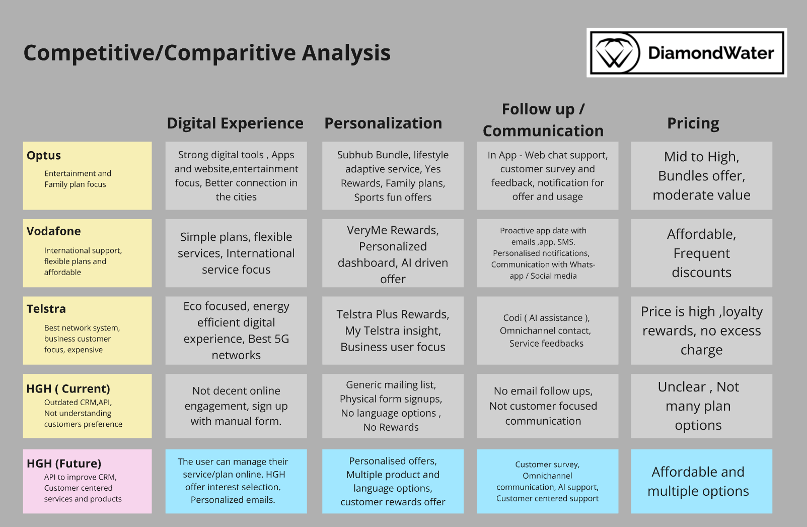 Role: RMIT University solo student project, I as a fictional company Diamond Waters’ intern.